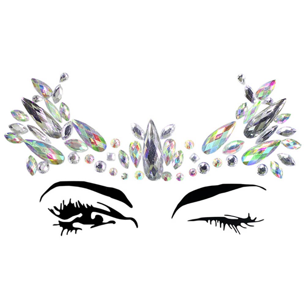 Sheet Size : 6.5" X 5" Make your look sparkle with these self-adhesive holographic face gems. Perfect for festivals, parties, or costumes, they apply easily and stay in place for hours. Reusable with skin-safe glue for endless glam moments.