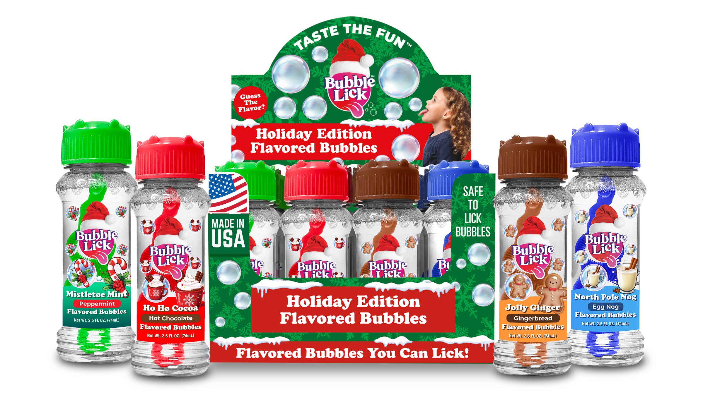 This deliciously scented collection includes four classic holiday-inspired aromas: Peppermint, Hot Chocolate, Gingerbread, and Egg Nog. Each bottle fills the air with the mouthwatering scent of your favorite holiday treats, turning every bubble into a burst of sweet-smelling joy. Perfect for parties, outdoor play, or just a little everyday fun—no spoon required! • Case Pack: 16 • Product Dimensions/Weight: 4.25 L x 1.50 W x 1.50 H / 0.25 LB • Inner Pack Dimensions/Weight: 7 L x 7 W x 5 H / 3.896 LB • Age Grade: 2+