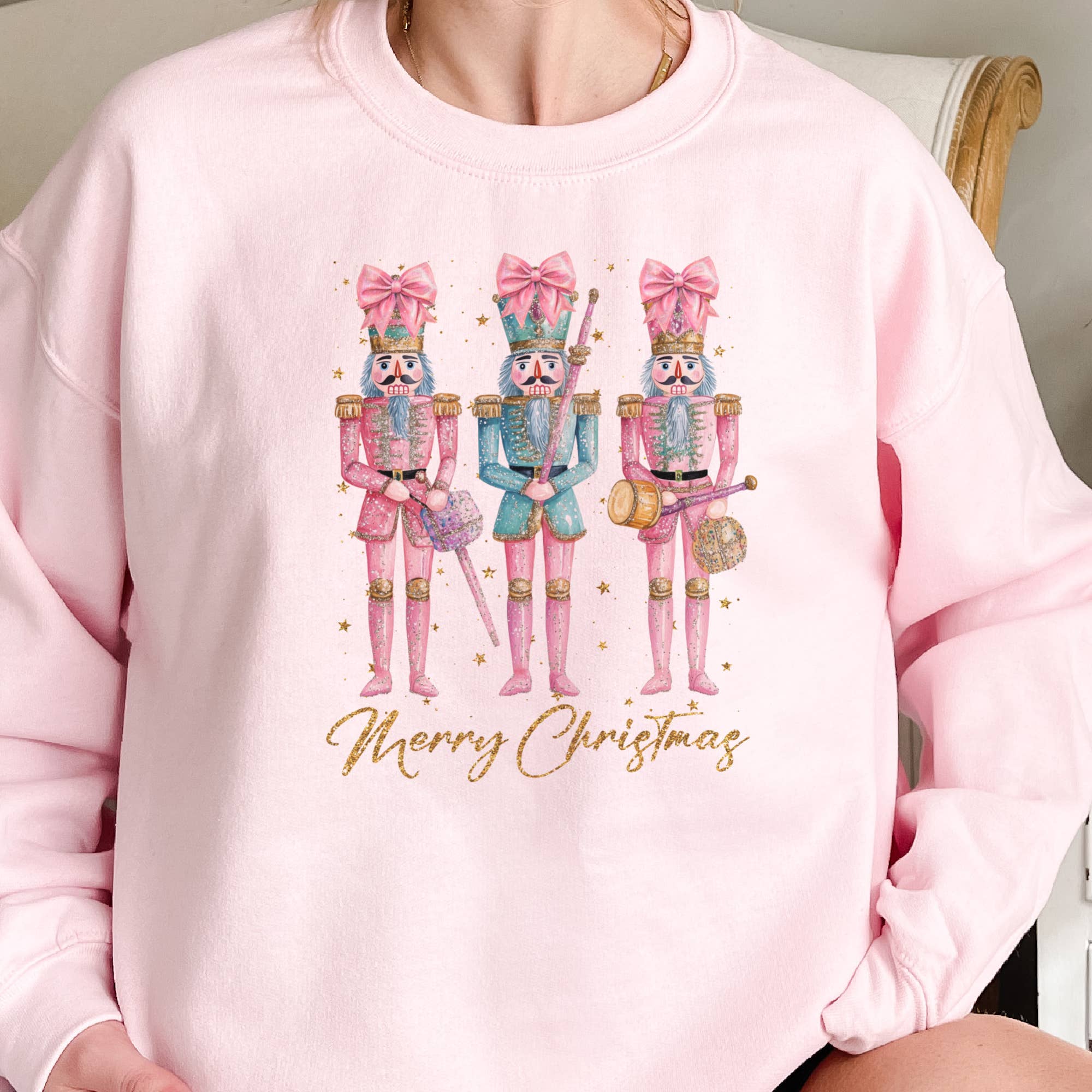 Get festive with the classic charm of the "Christmas Nutcracker" Sweatshirt! Featuring a timeless sublimation print of a traditional nutcracker, this shirt adds a touch of elegance and nostalgia to your holiday wardrobe. Made from a soft and cozy 50/50 poly-cotton blend, this tee offers all-day comfort while celebrating the season. With unisex sizing, it provides a perfect fit for everyone, making it a versatile and stylish choice for your boutique or online store. Whether it's for holiday gatherings, casual outings, or gifting, this tee is the perfect addition to any Christmas collection.